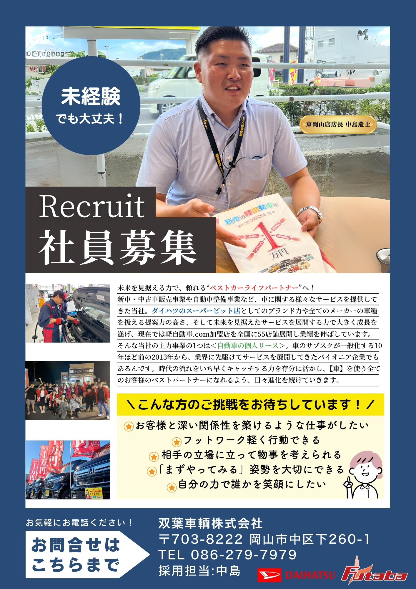 現在、双葉車輌では、新しい仲間を募集しています!![]()