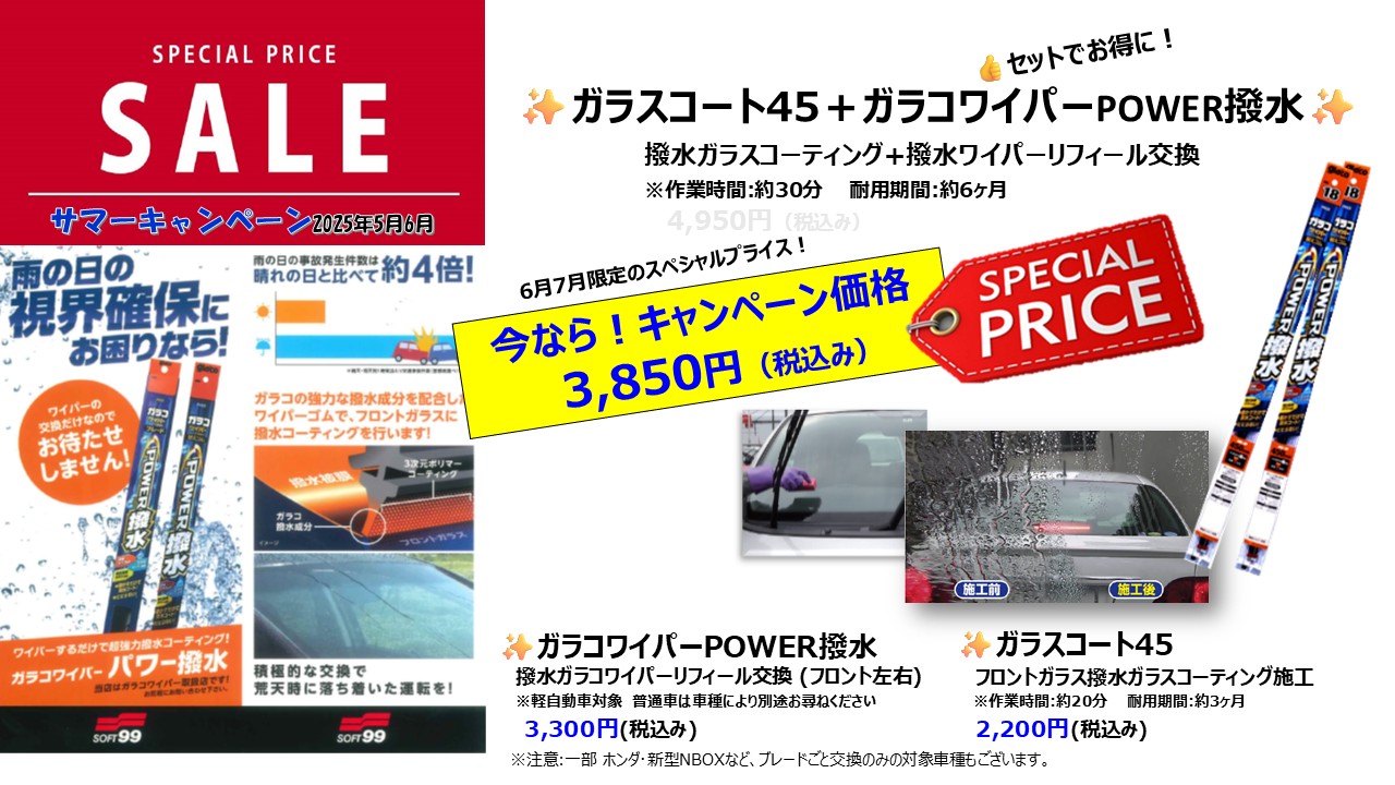 梅雨時期最強アイテム!🌟撥水ワイパー&撥水ガラスコート🌟