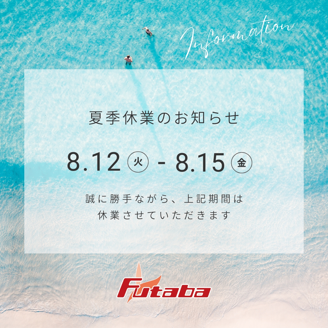 🏖️【夏季休業のお知らせ】🌞 いつも双葉車輌をご愛顧いただきありがとうございます。 誠に勝手ながら、下記の期間は夏季休業とさせていただきます。