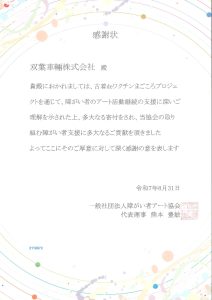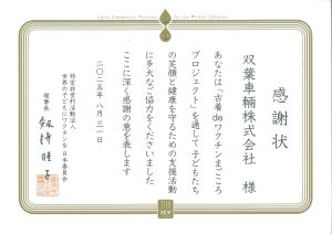 こちらの活動に対して、サポーター認定書と感謝状が届きました👏