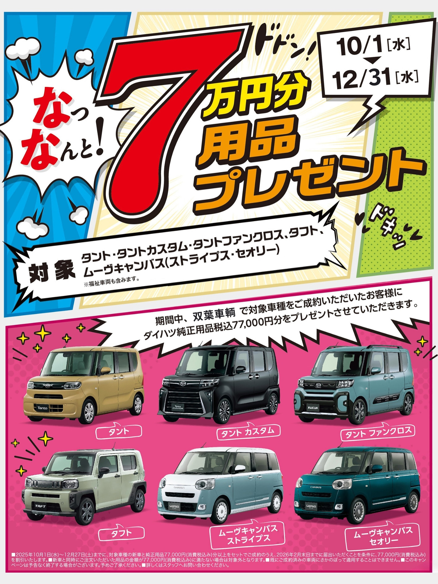 【DAIHATSUキャンペーン】\なっなんと!✨/ 7万円分用品プレゼント🔥