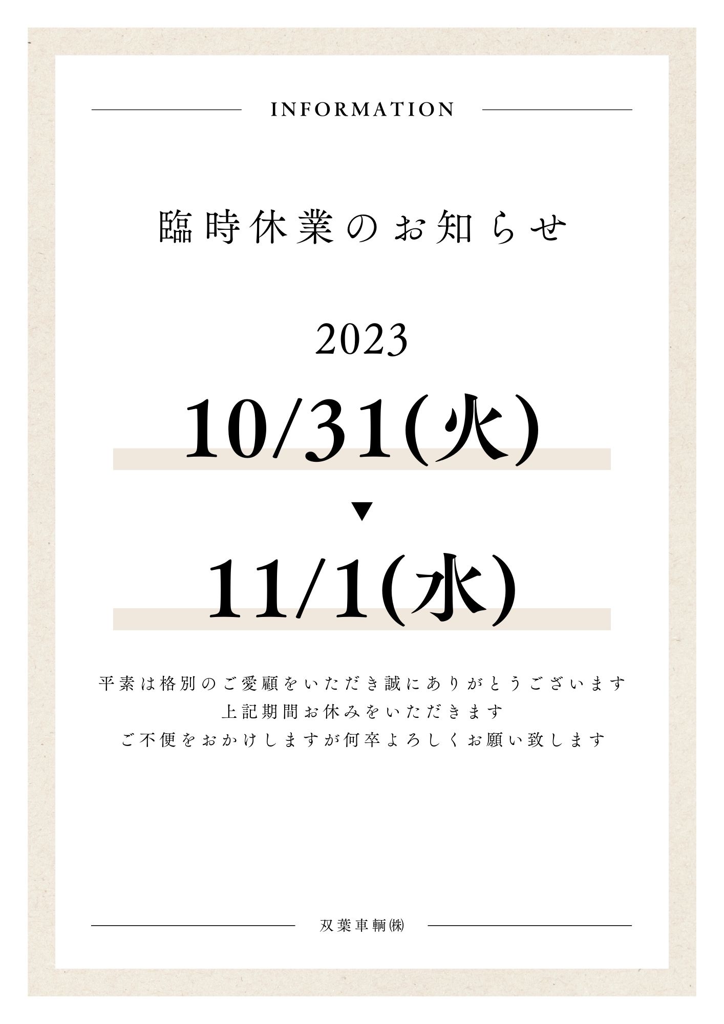 上記の日程で臨時休業させていただきます