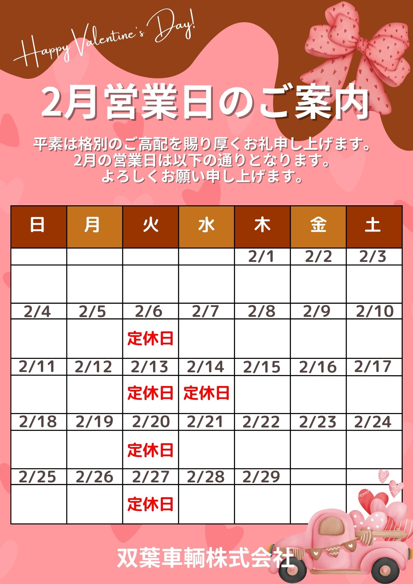 2月営業日のお知らせです‼