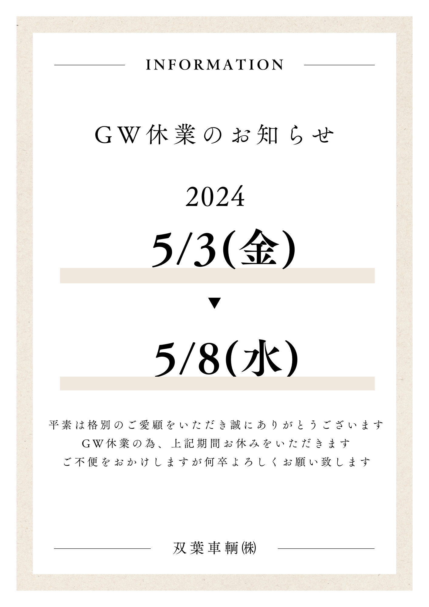 今年のゴールデンウィークは、5月3日(金)~5月8日(水)までお休みをいただきます。