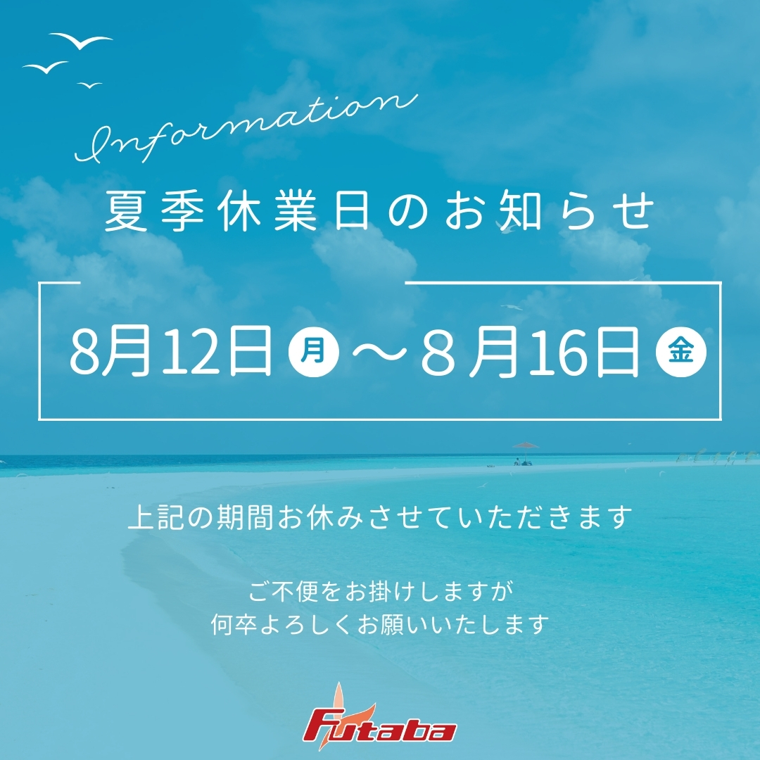 【夏季休業日のお知らせ】 誠に勝手ながら、以下の期間を 夏季休業日とさせていただきます。