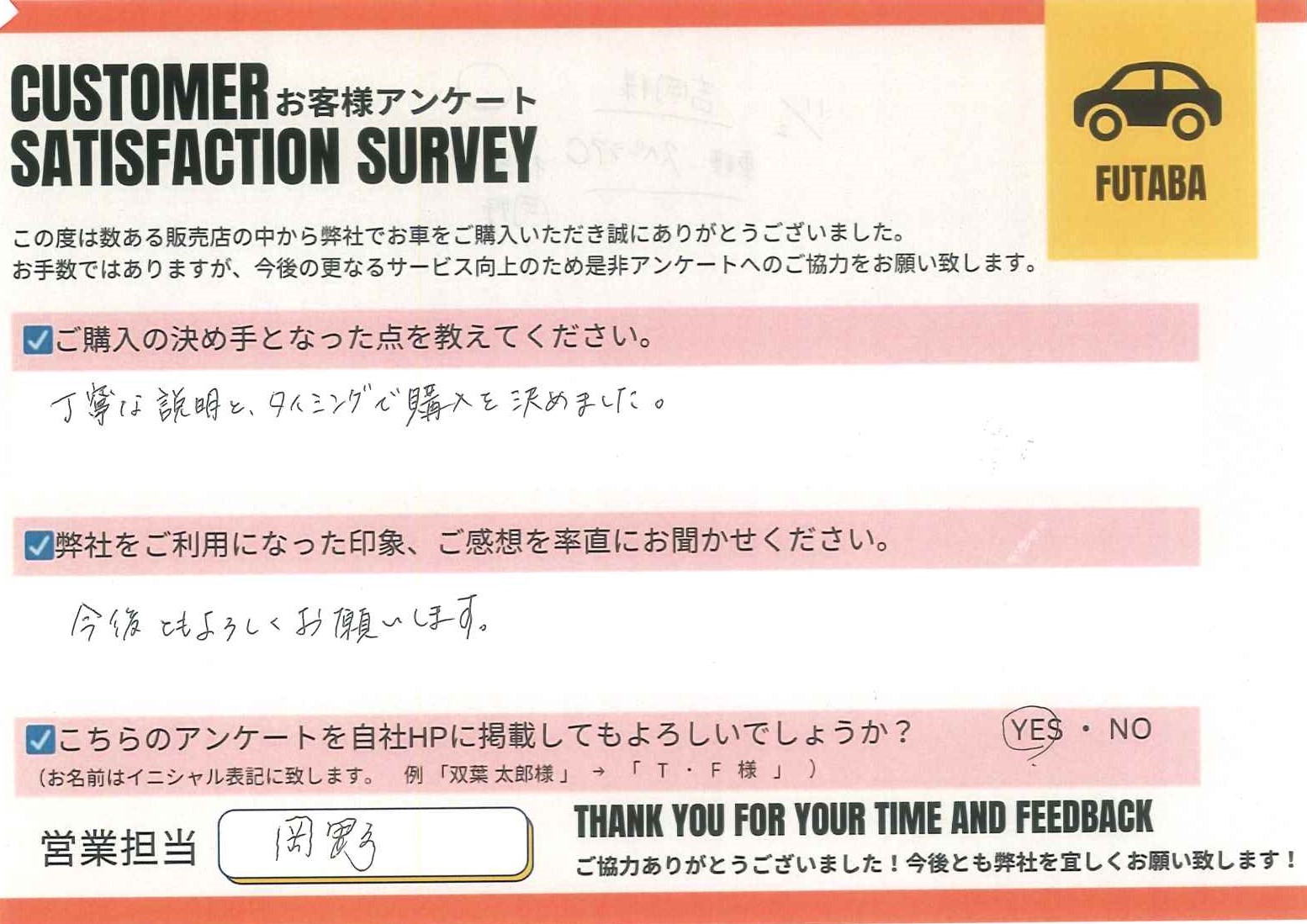 今後のカーライフも、担当の岡野をはじめ、双葉車輌スタッフ一同全力でサポートさせていただきます![]()