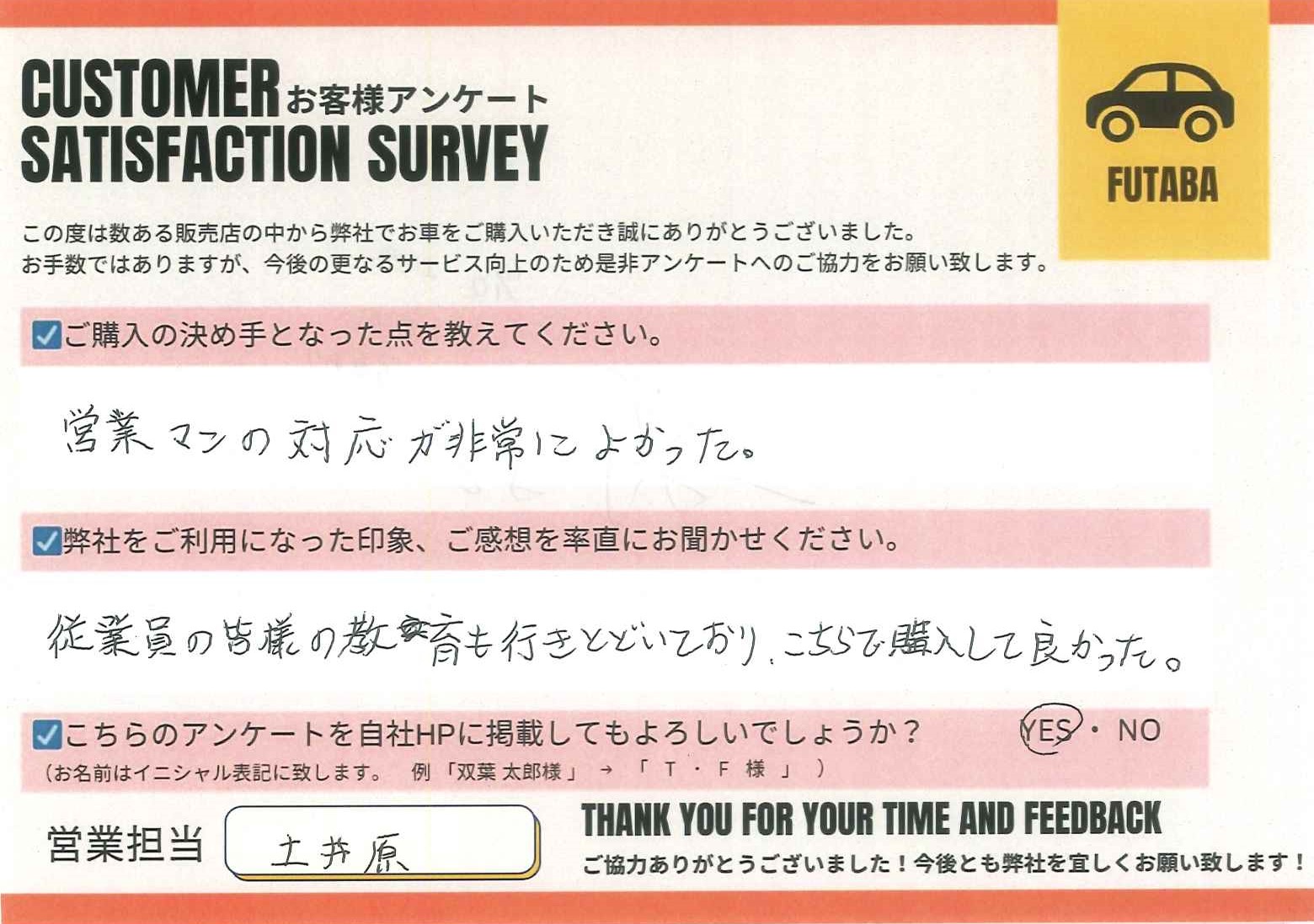 今後のカーライフも、担当の土井原をはじめ、双葉車輌スタッフ一同全力でサポートさせていただきます![]()