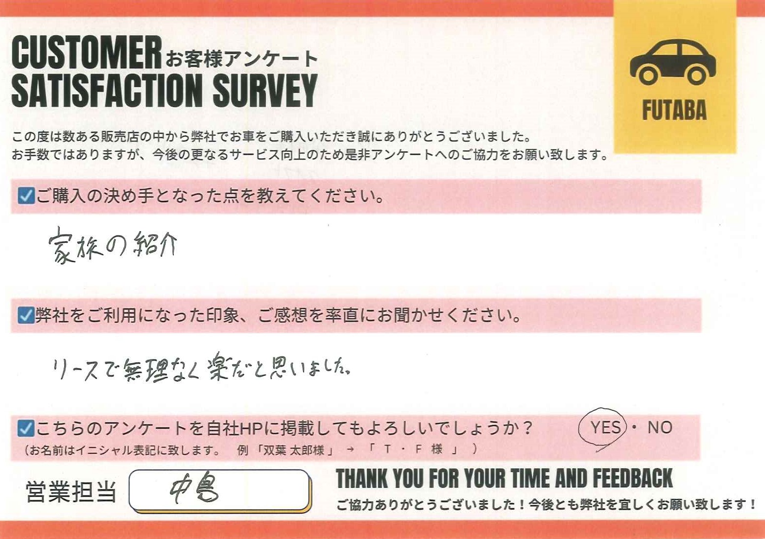 今後のカーライフも、担当の中島をはじめ、双葉車輌スタッフ一同全力でサポートさせていただきます