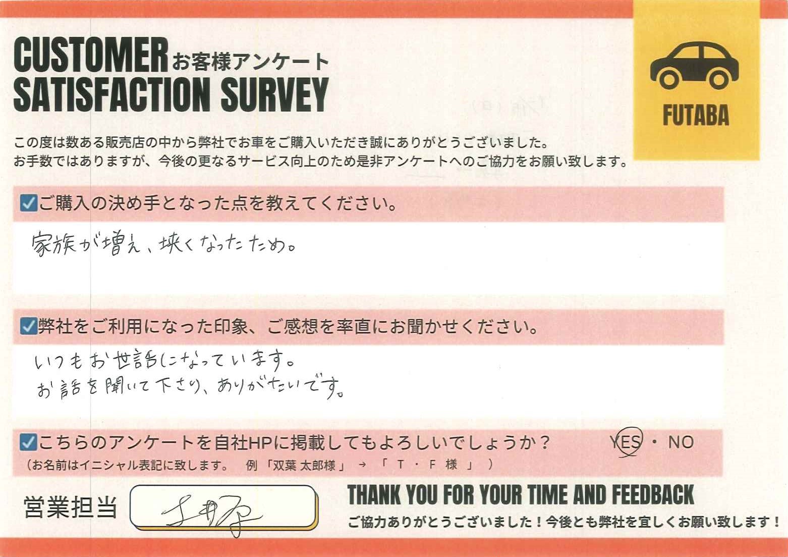 今後のカーライフも、担当の土井原をはじめ、双葉車輌スタッフ一同全力でサポートさせていただきます![]()