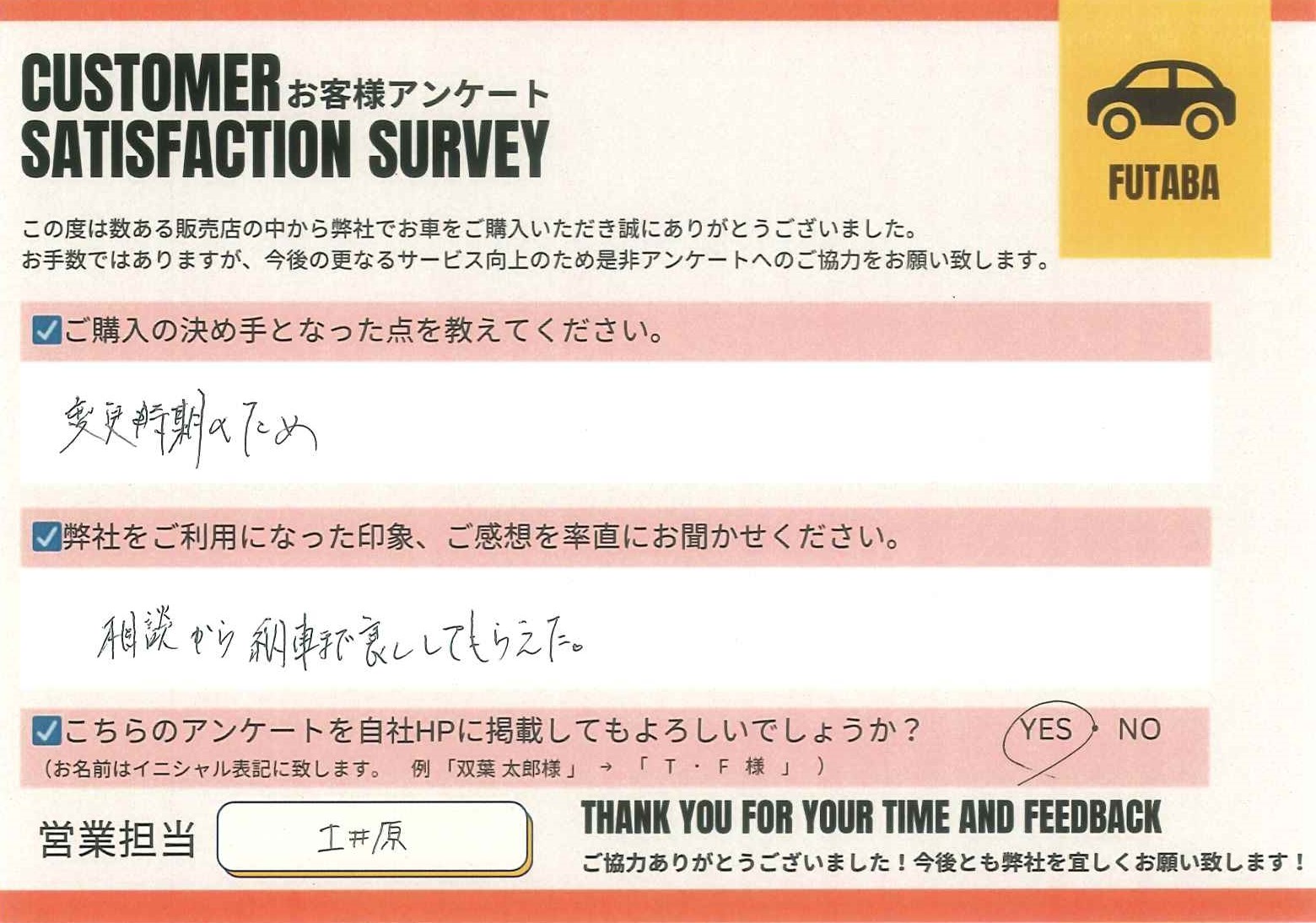 今後のカーライフも、担当の土井原をはじめ、双葉車輌スタッフ一同全力でサポートさせていただきます