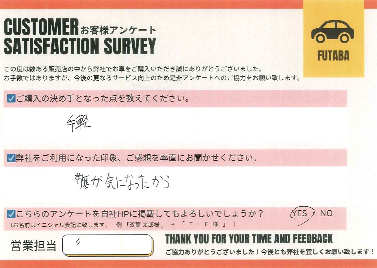 今後のカーライフも、担当の岡野をはじめ、双葉車輌スタッフ一同全力でサポートさせていただきます![]()