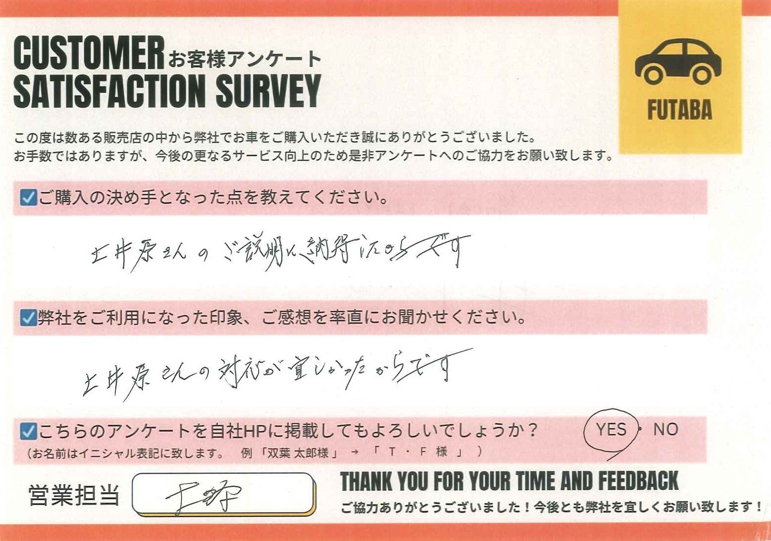 今後のカーライフも、担当の土井原をはじめ、双葉車輌スタッフ一同全力でサポートさせていただきます![]()