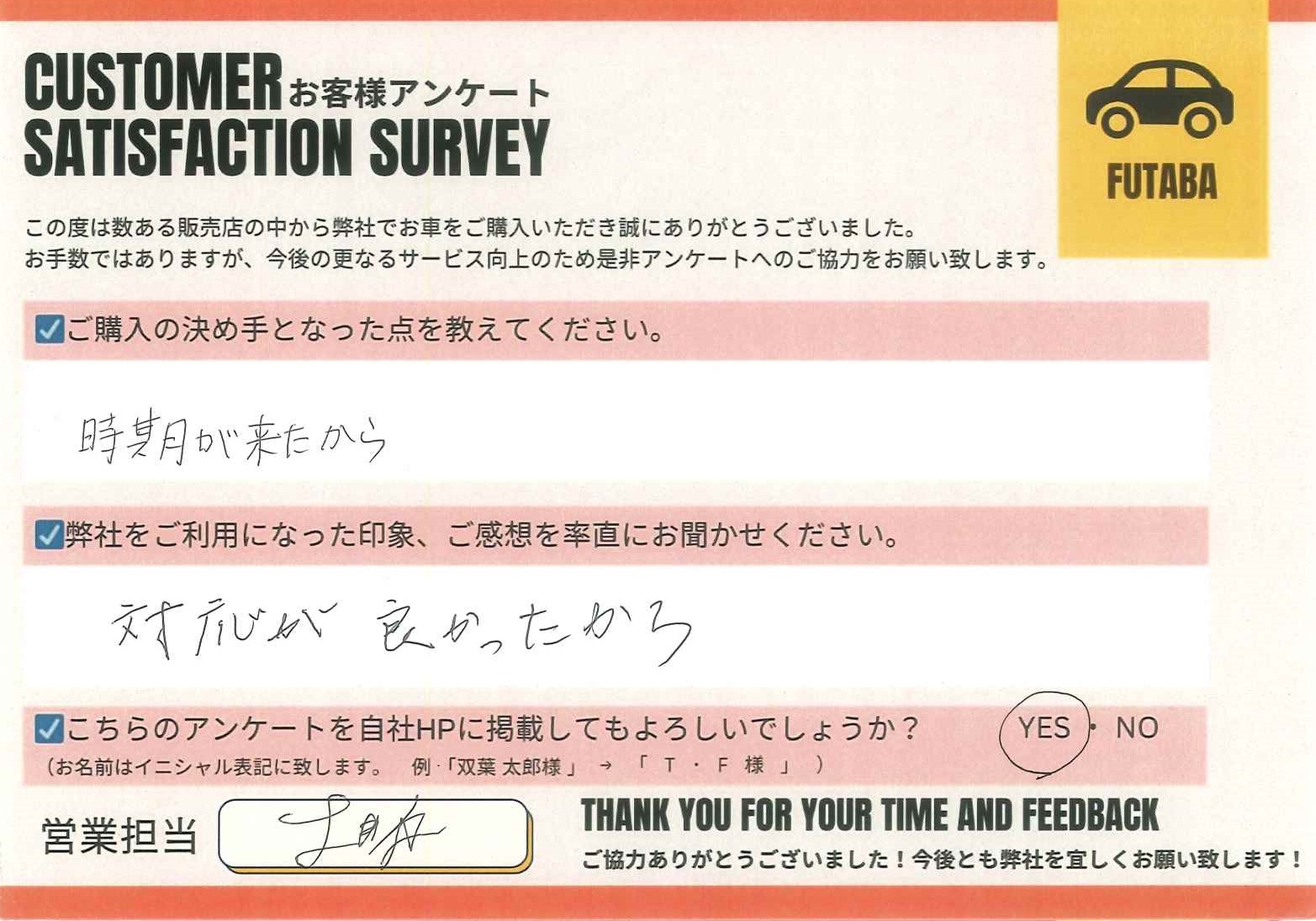 今後のカーライフも、担当の土井原をはじめ、双葉車輌スタッフ一同全力でサポートさせていただきます![]()