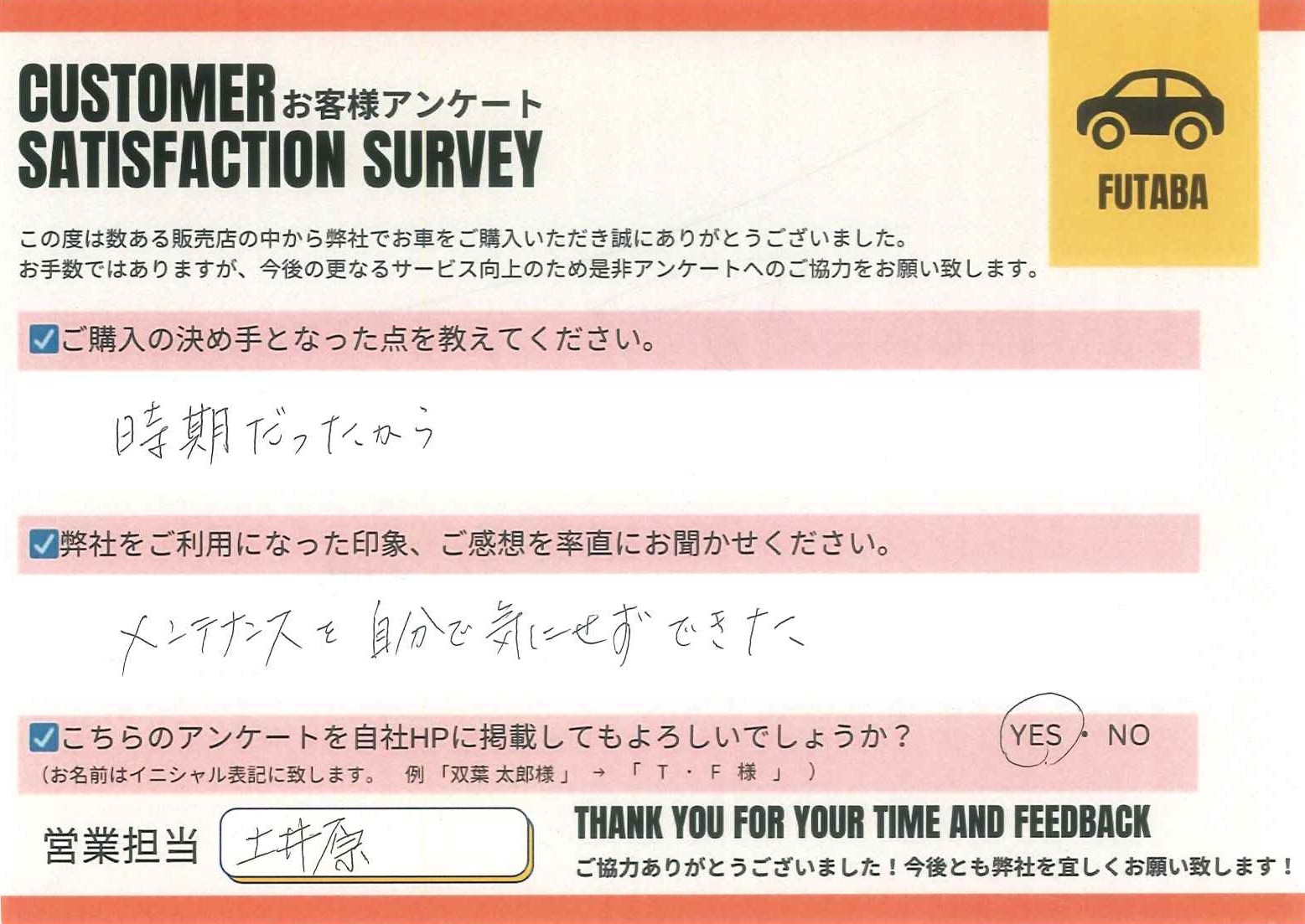 今後のカーライフも、担当の土井原をはじめ、双葉車輌スタッフ一同全力でサポートさせていただきます![]()