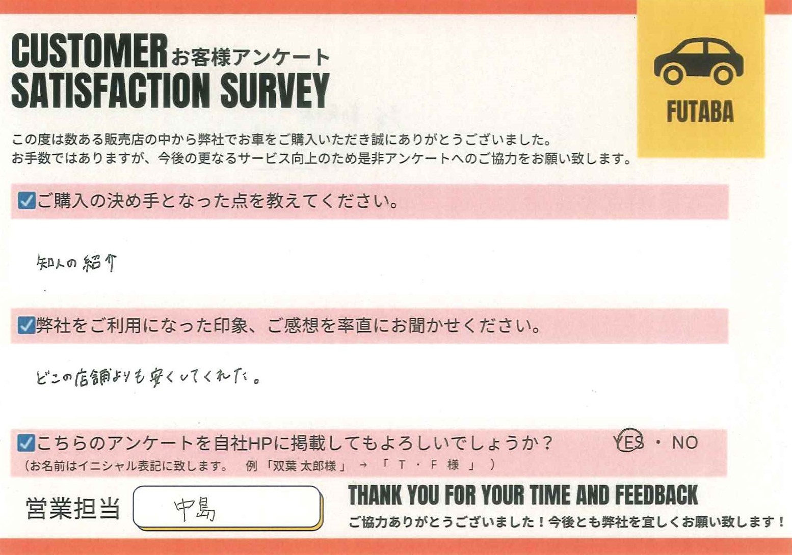 今後のカーライフも、担当の中島をはじめ、双葉車輌スタッフ一同全力でサポートさせていただきます![]()