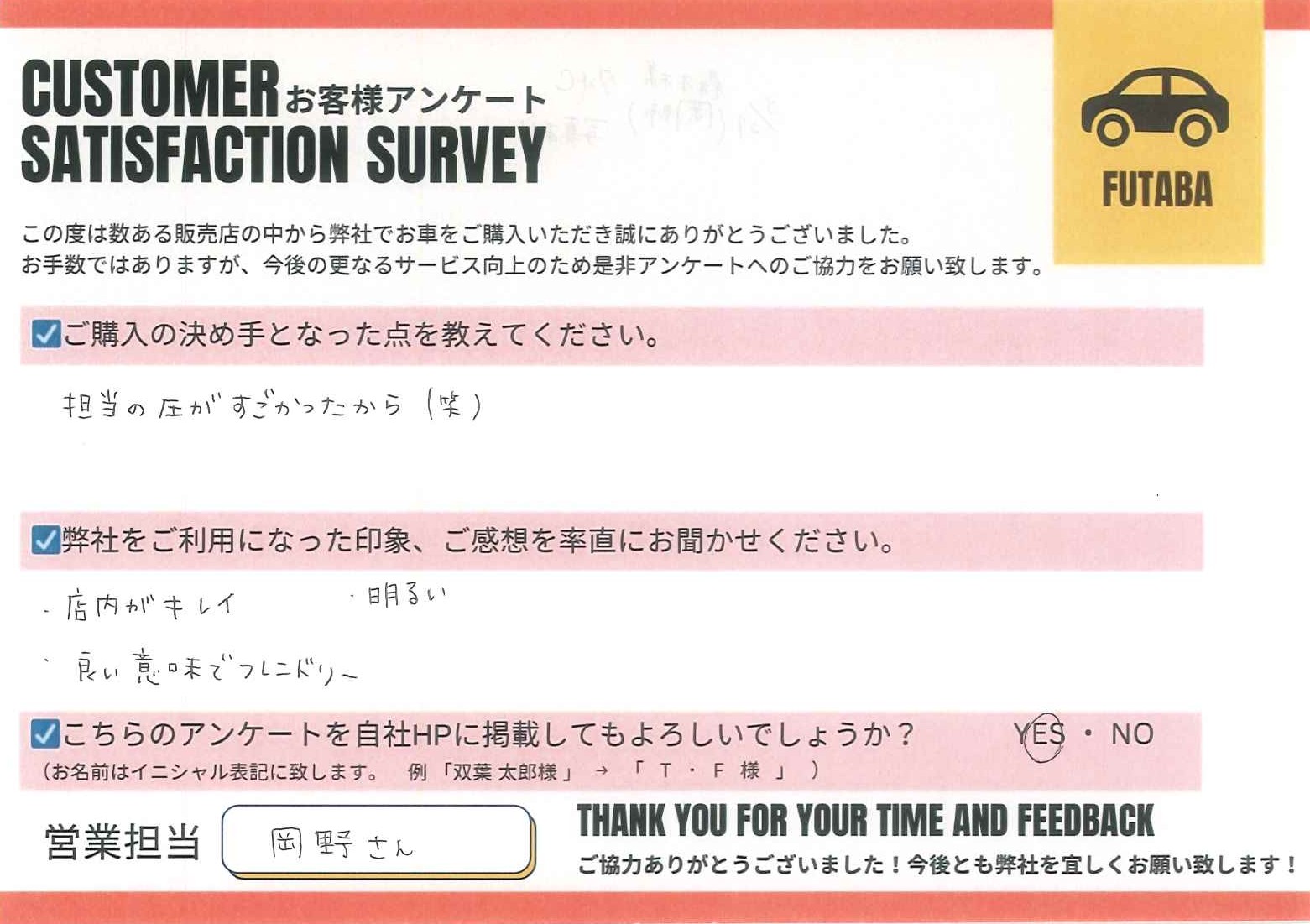 今後のカーライフも、担当の岡野をはじめ、双葉車輌スタッフ一同全力でサポートさせていただきます![]()