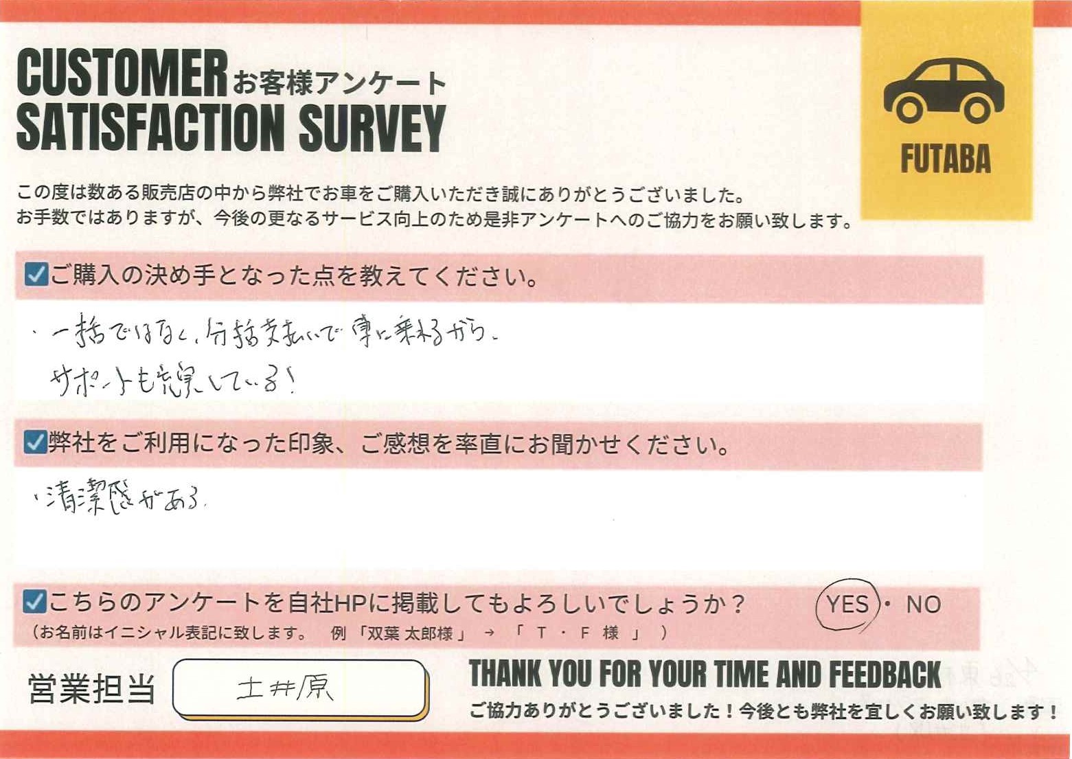 今後のカーライフも、担当の土井原をはじめ、双葉車輌スタッフ一同全力でサポートさせていただきます![]()