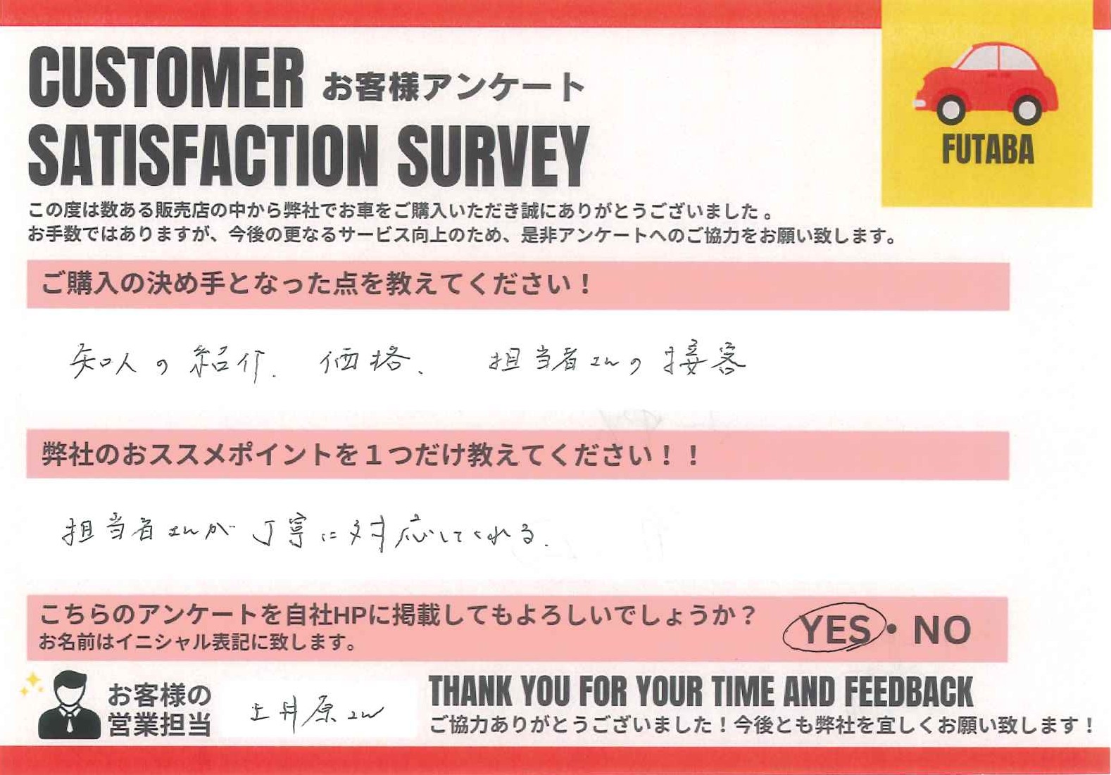 今後のカーライフも、担当の土井原をはじめ、双葉車輌スタッフ一同全力でサポートさせていただきます