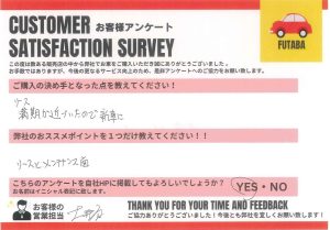 今後のカーライフも、担当の土井原をはじめ、双葉車輌スタッフ一同全力でサポートさせていただきます![]()