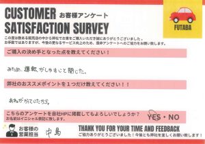 今後のカーライフも、担当の中島をはじめ、双葉車輌スタッフ一同全力でサポートさせていただきます![]()