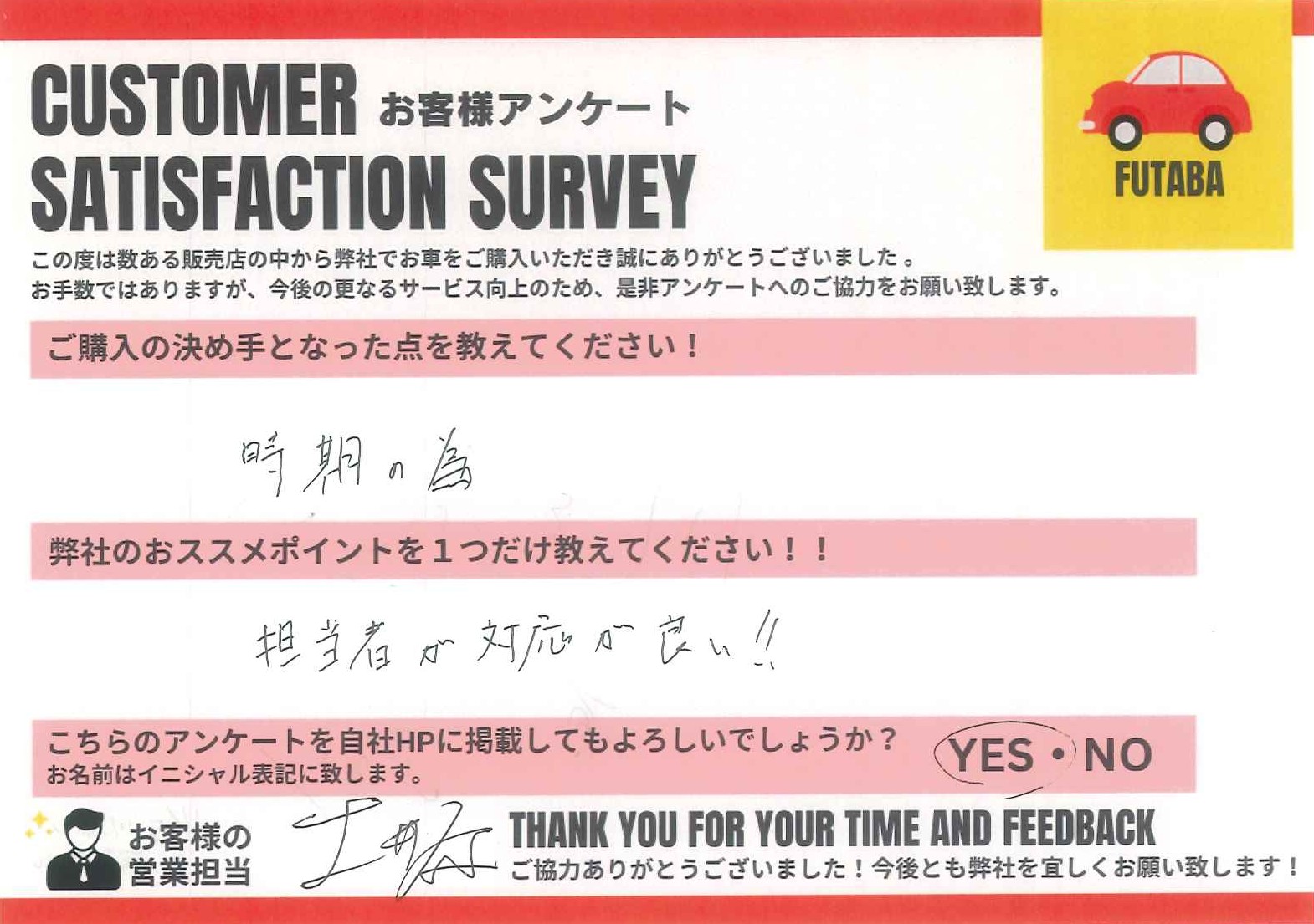 今後のカーライフも、担当の土井原をはじめ、双葉車輌スタッフ一同全力でサポートさせていただきます![]()