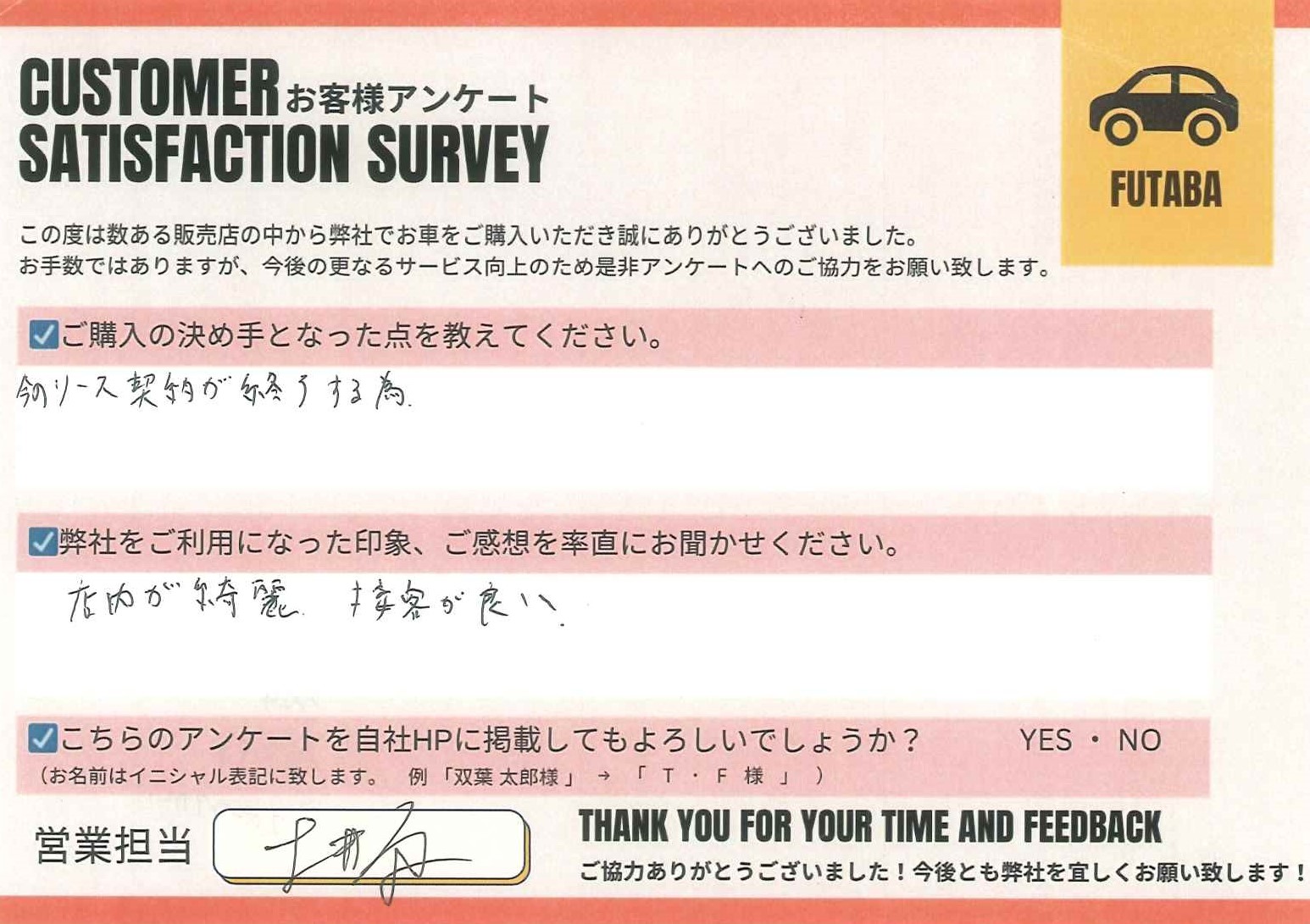 今後も、担当の土井原をはじめ、双葉車輌スタッフ一同全力でサポートさせていただきます!![]()