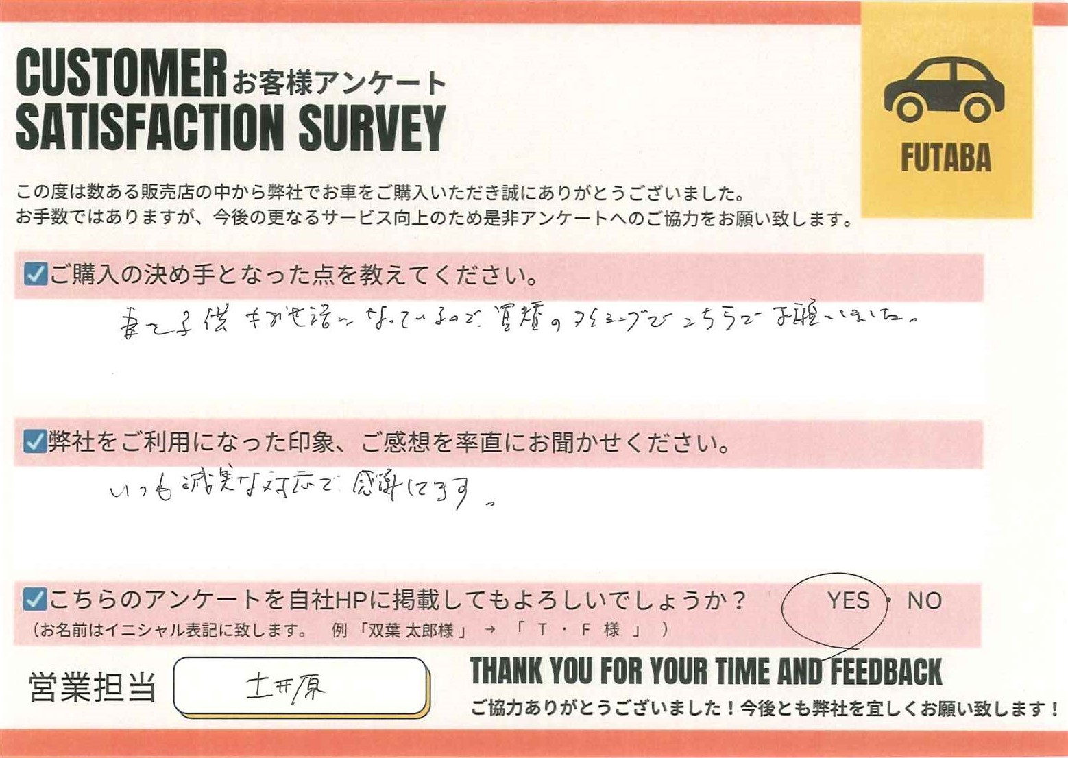 今後のカーライフも、担当の土井原をはじめ、双葉車輌スタッフ一同全力でサポートさせていただきます![]()