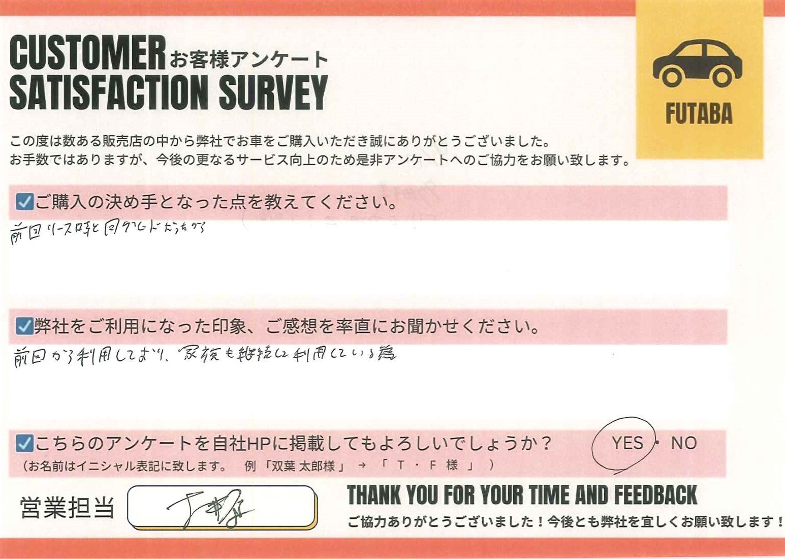 今後のカーライフも、担当の土井原をはじめ、双葉車輌スタッフ一同全力でサポートさせていただきます![]()