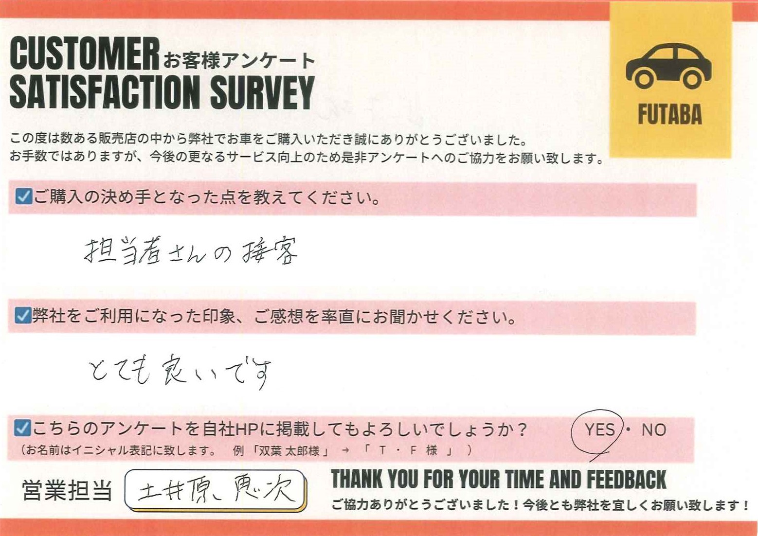 今後のカーライフも、担当の土井原をはじめ、双葉車輌スタッフ一同全力でサポートさせていただきます![]()