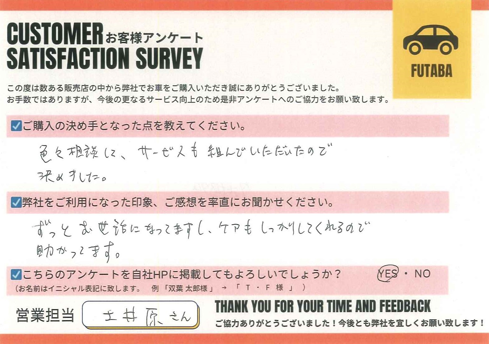 今後のカーライフも、担当の土井原をはじめ、双葉車輌スタッフ一同全力でサポートさせていただきます![]()