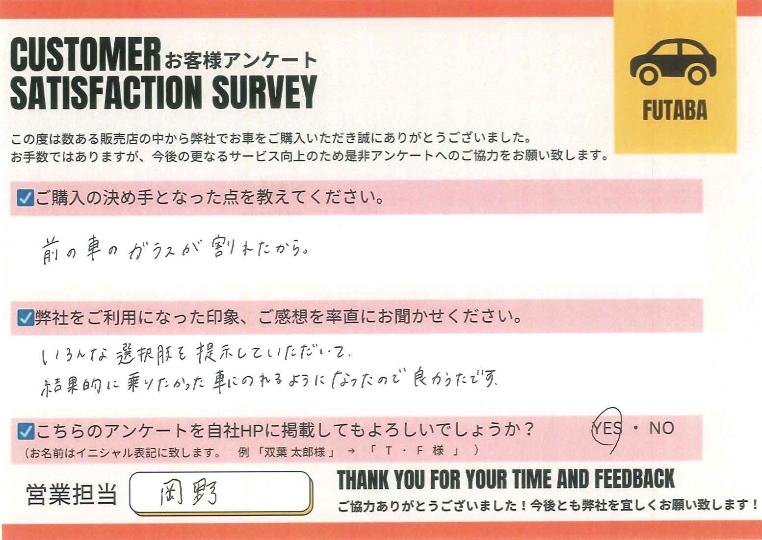 今後のカーライフも、担当の岡野をはじめ、双葉車輌スタッフ一同全力でサポートさせていただきます