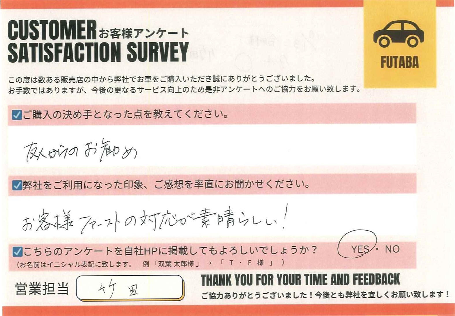 今後のカーライフも、担当の竹田をはじめ、双葉車輌スタッフ一同全力でサポートさせていただきます![]()